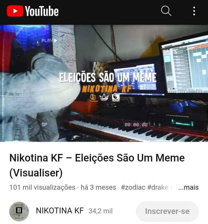 A música “Eleições são um Memes” do Rapper Nikotina KF atinge 100mil Visualizações no YouTube