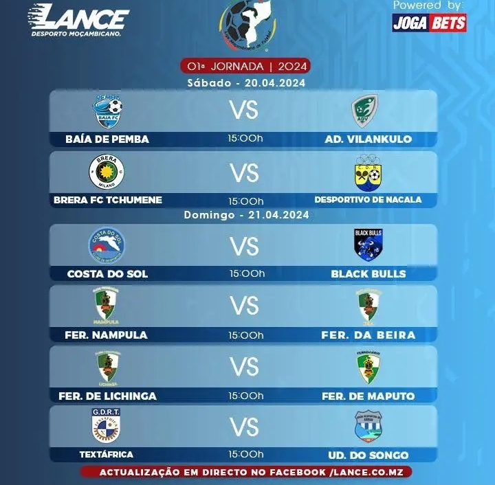 Hoje, 20 de abril, marca o pontapé de saída do tão aguardado Campeonato Nacional de Futebol, o Moçambola 2024. Os adeptos do futebol em todo o país estão ansiosos para testemunhar a emocionante jornada que se avizinha, repleta de jogos intensos, rivalidades acirradas e momentos inesquecíveis. O primeiro confronto do dia está marcado entre o […]