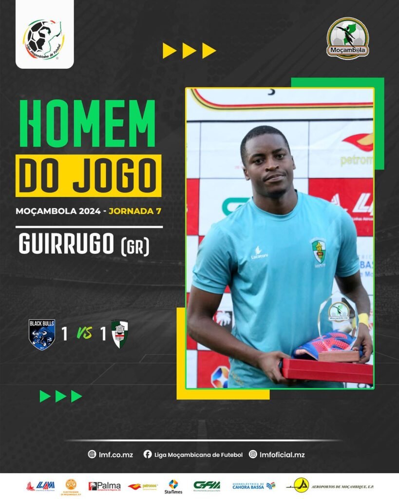 Na história do Moçambola, pela primeira vez, um guarda-redes recebeu a honra de ser considerado o Homem do Jogo. Guirrugo, do Clube Ferroviário de Maputo, teve uma atuação excepcional que foi fundamental para o empate de sua equipe contra o líder Black Bulls. O guardião mostrou sua importância ao longo da partida, defendendo com maestria […]