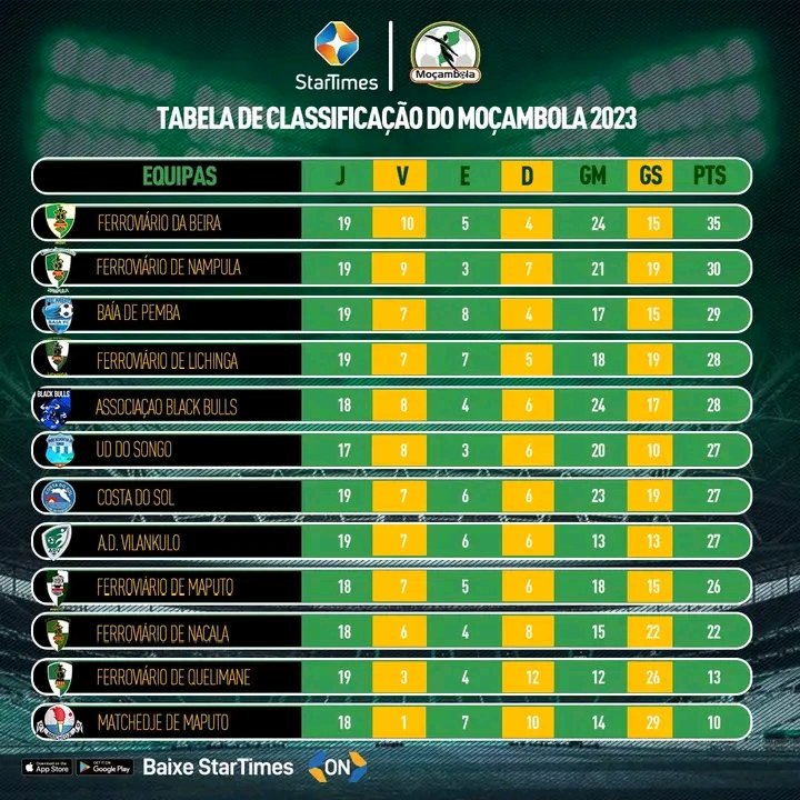 O Moçambola 2023 está chegando ao seu emocionante desfecho, e duas equipes, o Ferroviário de Maputo e o Ferroviário de Nacala, encontram-se à beira do precipício, lutando para evitar a temida despromoção. Com apenas três jornadas restantes, a batalha pela permanência está mais intensa do que nunca, e cada ponto ganho é vital para a […]