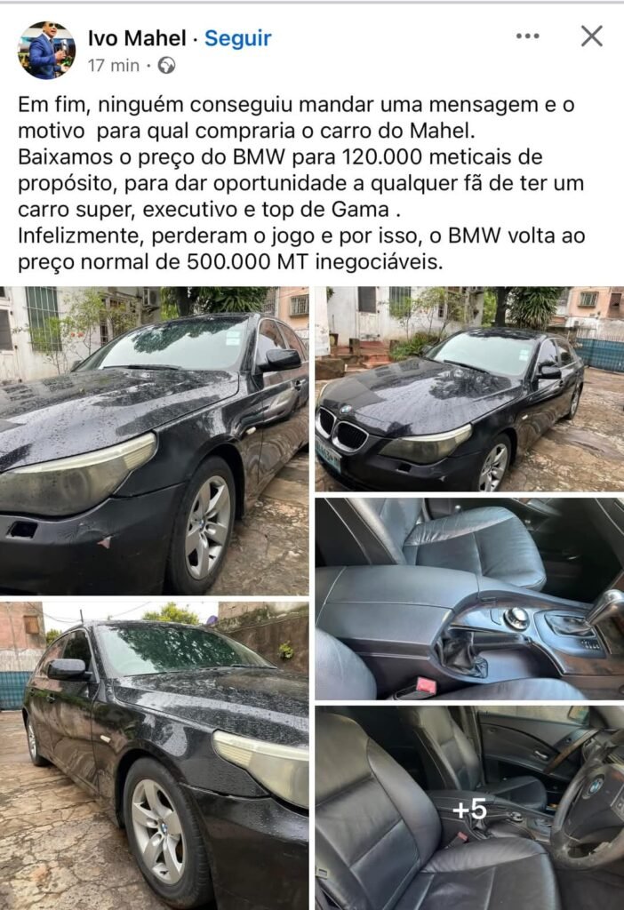 O cantor moçambicano Ivo Mahel anunciou recentemente que o preço do seu BMW, originalmente avaliado em 500.000 meticais, voltará ao valor inicial após uma promoção especial não ter gerado o interesse esperado. Durante um curto período, o veículo foi oferecido por 120.000 meticais, uma redução estratégica pensada para proporcionar aos fãs uma oportunidade única de […]