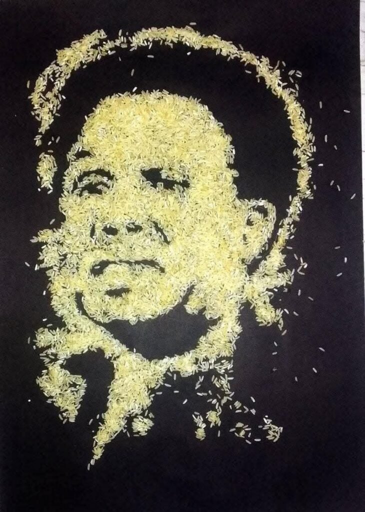 Fredy Uamusse Inova com Retrato Feito de Arroz e Ganha Destaque nas Redes Sociais