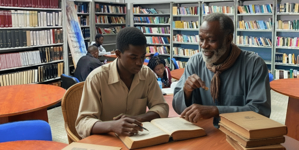O silêncio da biblioteca era profundo, quase sagrado. Mário folheava um livro antigo, com páginas amareladas e letras pequenas. “Professor,” perguntou ele, “se a educação era o caminho da libertação, por que é que nem todos podiam estudar?” Mahlemba ajeitou os óculos e respondeu: “Porque o saber é poder, Mário. E quem domina nunca partilha […]